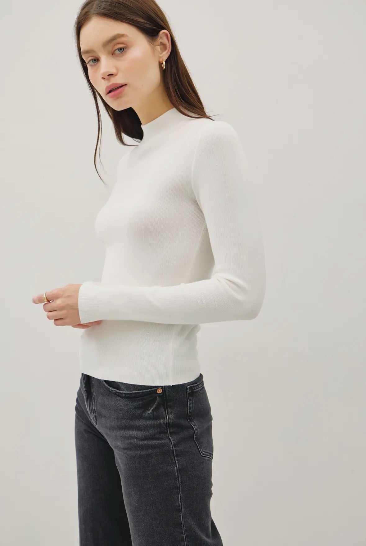 Juliana Mock Neck Ribbed Sweater, Ivory