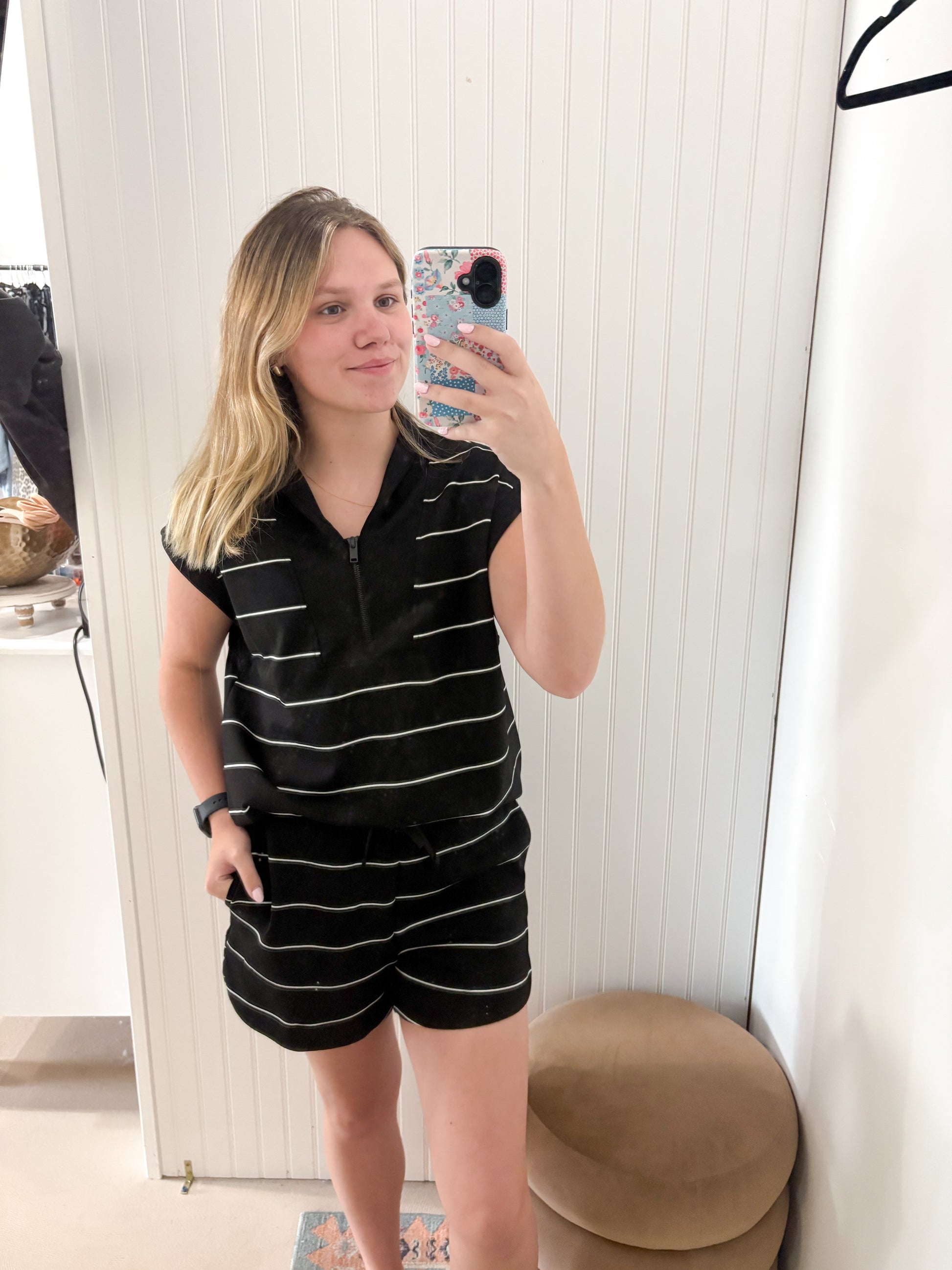 Shelbi Scuba Striped Shorts, Black/White